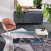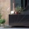 The essential, minimalist dimensions of Solaris are enhanced by attractive details: elegantly engraved pink gold rays spread over the surface to create an original designer object that will enliven its surroundings, just like the sunrays that inspire it. Its eccentric elegance is exalted by the base, shaped to create continuity with the harmonious pattern created by the rays engraved on the sideboard surface. Perfectly corresponding rays continue on the different planes and are witness to the meticulous attention paid to detail by Riflessi’s skilled artisans.