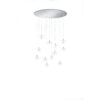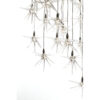 Chandelier with support in white or black lacquered or mirror glass and pendant stars in blown borosilicate glass, transparent or coloured with LED. It is possible to realize customized versions for dimensions, length and shape.