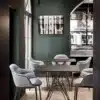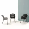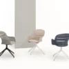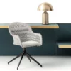 Chair with arms, swivel chair, swivel castor chair with lacquered Metal frame. Back in elastic fabric with patterned net and Seat upholstered and covered in elastic fabric with uniform net or Eco leather.