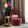 Armchair with padded wooden structure. Upholstery available in fabric, velvet or leather with internal San Marco quilting. Optional swivel magnetic base.