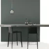 Ceiling light with chromed celiling pink and transparent cable. Laquered metal frame. Hand floating glass.
