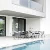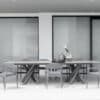 The maxi and maxi long System Star tables let you enjoy conviviality. The large top is placed on two elliptical bases, whose legs intertwine in a play of lines like a star, the characteristic motif of the entire System Star collection. Elegance and personality, to furnish with style the outdoor dining areas of residential and contract environments. The strong personality of the System Star table gives elegance and style to the outdoor spaces it furnishes and finds full expression in both residential and contract settings.
