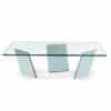 Coffee table with legs in 15mm thick extraclear etched, bush-hammered, lacquered or etched lacquered glass.