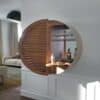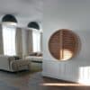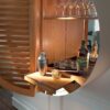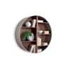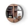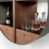 Tao is a wall unit with a round structure, with a modern and original design. It can be used as a bookcase to decorate the walls of the living room and bedrooms in the open version, or as a sideboard that can accommodate books or decorative objects. In the most sophisticated mobile bar version, with drawer and pull-out shelf, it acquires a strong visual impact with the doors in solid canaletto walnut.