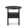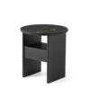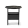 The structure of the Tau coffee table or bedside table is made up of two veneered wood panel sides and vertical solid wood heads rounded and then veneered. Available with a wooden top with a chamfered edge or with a ceramic surface simply resting on the wooden top.