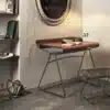 Desk with lacquered Metal frame, top covered in Hide Leather.