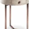 The Teo coffee table has a vintage style expressed by its metal structure. The top, with a drawer, can be covered in leather or eco-leather, or even decorated with any of the finishes available in the sample set.