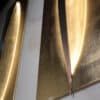 Wall lamp in extra clear glass 5 mm thick in gold leaf finish. Metal frame in brass finish. Vertical bar in burnished brass finish with LED strip
