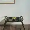 Coffee table with Solid wood frame and lacquered Metal top. Optional tray in lacquered Aluminium.