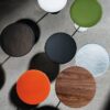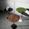 Coffee table with chromed or lacquered metal base, various finishes. Tempered or laminated top in different measures, materials and finishes.
