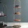 Tweet distorts the very concept of “library”: it is an incredibly precious golden cage, with a round base. Tweet creates a new way to observe your own books and ornaments: within curves, its geometry gets rid of preconceptions. Its marble base, the solid wood shelves and the precious metal, are there to be the perfect showcase for your most beautiful objects.