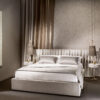 The headboard is made of twisted bands, made of leather, nubuck, or econabuk, and sewn with visible stitching. The bed frame is padded and removable. The Twist bed is perfect for an international bedroom.
