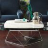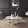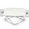 EXTENSIBLE COCKTAIL TABLE WITH CERAMIC AND GLASS TOPS, PAINTED OR GALVANIZED STEEL BASE. EQUIPPED WITH AN INNOVATIVE MECHANISM THAT THROUGH THE UPPER ROUND TOP ROTATION, ALLOWS THE LOWEST 2 SMALL TOPS TO OPEN AUTOMATICALLY. AVAILABLE ALSO WITHOUT MECHANISM.