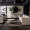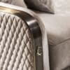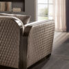 The base is in bronze with the classic Cantori decoration. The softness of the coverings and the quilted exterior, which can also be made with a fabric provided by the customer, are in contrast with the bronze bands of the side armrests which intersect on the back and creating a strong graphical design. An armchair with an ambivalence of styles: it is suitable for a modern setting and can also be perfectly integrated within a classic one. Absolute comfort guaranteed by the two available sizes.