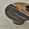 Coffee table with metal frame and decorative details. Top in Spermarble and Veneer.