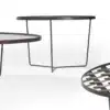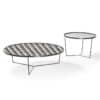 Low tables with metal structure in Bronze finish. Top in Marmoreflex/Legnoreflex.